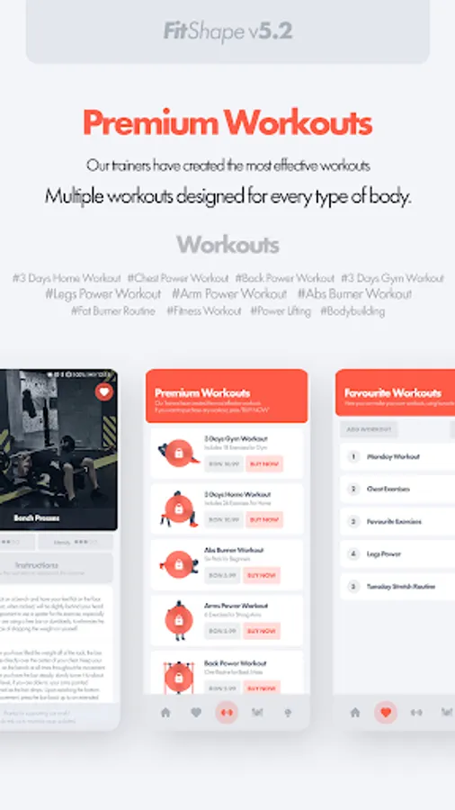 • Opportunity to create your own Workout, using Favourite section: Just create your list and add exercises using "Love" button !