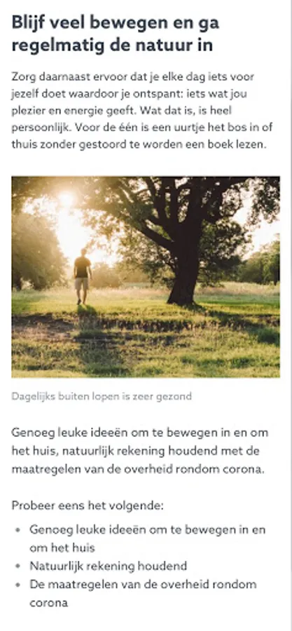 The FitzMe app is complementary to the FitzMe portal, a web environment where users can do different types of actions to improve their health like questionnaires and outcomes, online trainings, search for relevant information (articles, animation, vlogs, etc) and chat with their coach. With the app the user has all these possibilities on their mobile phone including the possibility for push notifications and connection to Apple Health. The FitzMe portal/app is developed for and commissioned by CZ, the biggest Health Insurance company in the Netherlands.