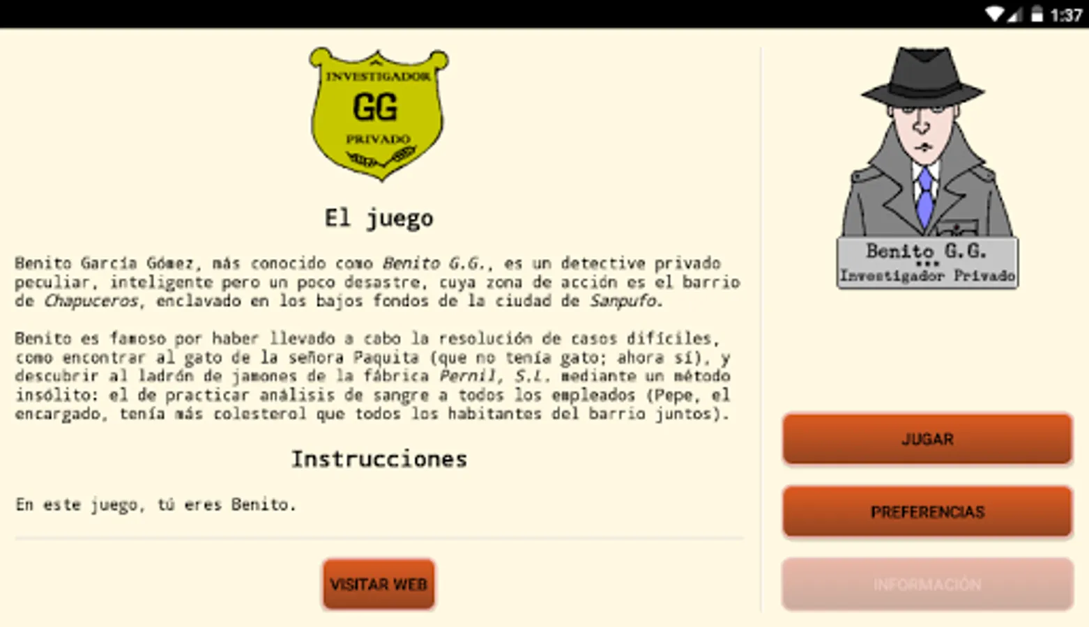 In the game, you guide Benito in the resolution of cases that will be presented while wandering around the neighborhood, looking for the unmistakable smell of crime.