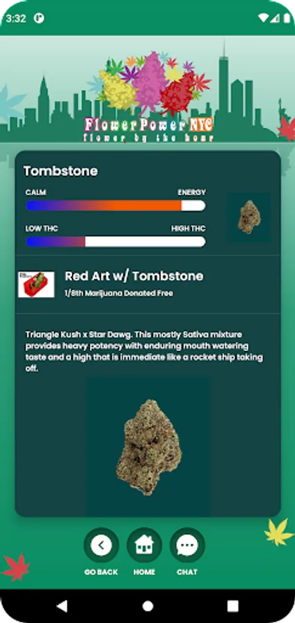 description (en_US): “Online Events Service Power NYC is intended for use inside New York City, New York State, United States ONLY. Flower Power NYC from HD Applications is a Free to download 21+ state ID or country passport verified cannabis centric social club members only service with LIVE IN-APP support providing access to cannabis centric artwork and NYC live events! Order art and get access to awesome love events through the art QR code. Events will include but are not limited to live concerts, comedy shows, restaurant dinners or food outings etc. Say hello to convenience! Don't get up, we've got you covered. We are your one stop shop resource to everything weed-centric. Discover strains, learn about reported effects, feelings and reviews. Enjoy browsing cool cannabis-centric art and merchandise while educating yourself on different strain lineages.