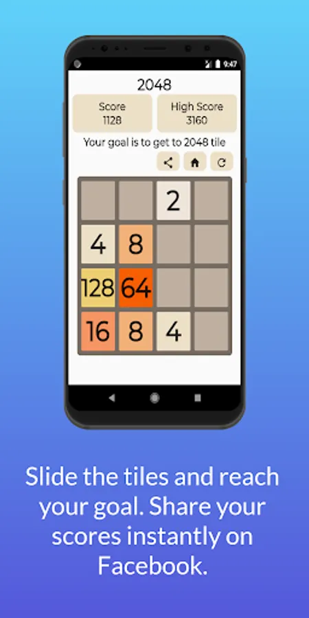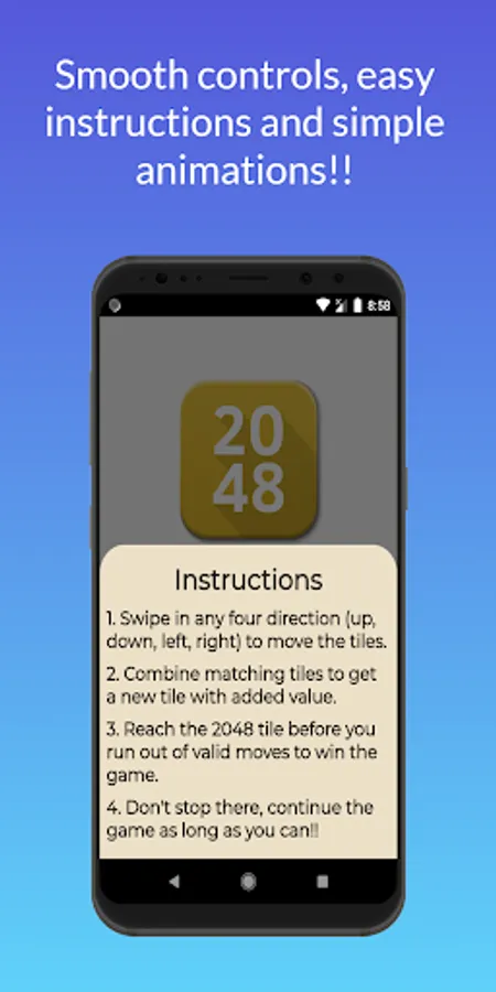 Classic 2048 puzzle game is a mind-refreshing tile game with simple animations and logic.