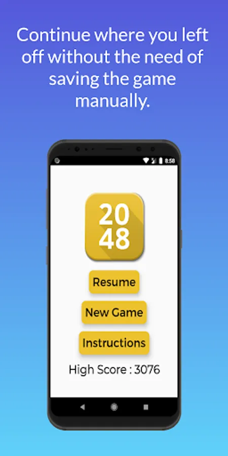 Classic color combinations, simple animations and easy instructions along with the auto save feature allows players to get completely lost in the 2048 game.