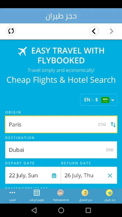 Flybooked application is an application that helps to search for cheaper flights and hotels with ease and ease
