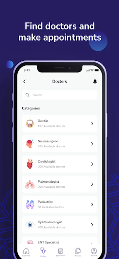 Users can easily browse through a curated list of certified doctors, specialists, and medical practitioners providing detailed profiles, including specialties, credentials, and patient reviews, aiding users in making informed choices.