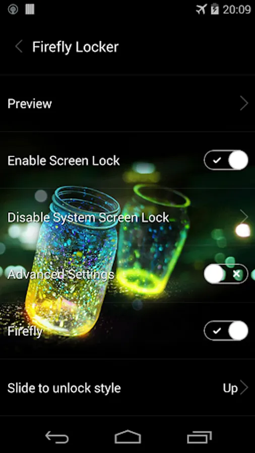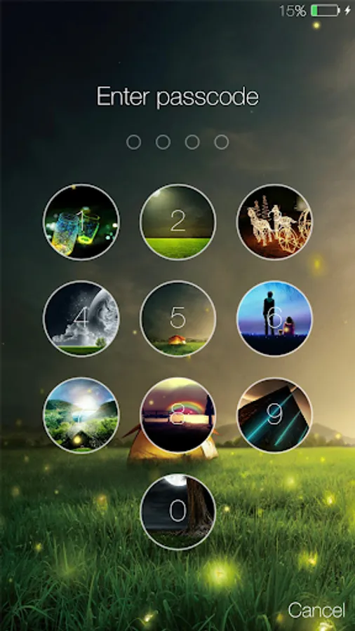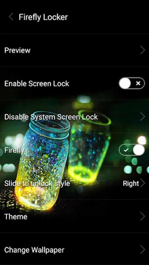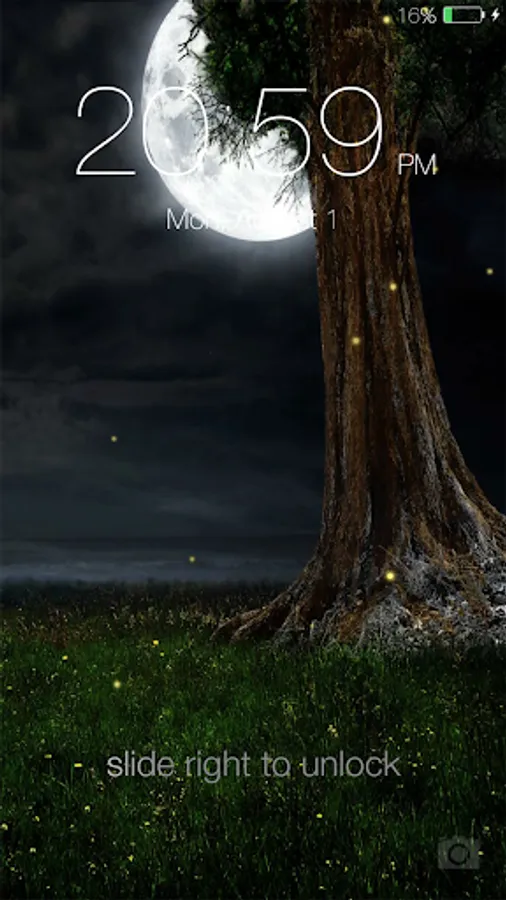A beautiful lock screen with Fireflies live wallpaper theme for Android devices,