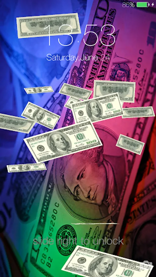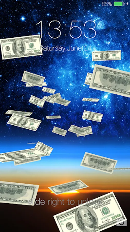 This locker is completely free of charge,so download it to enjoy falling dollar money in the sky,In addition, share it with your friends if you really like this application,Thanks!