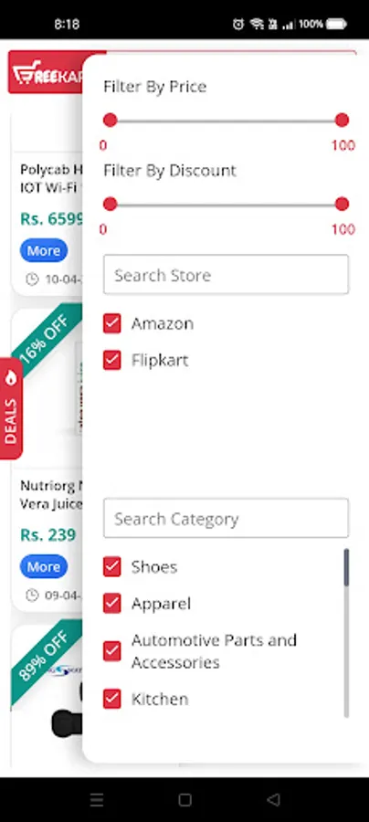Freekart is best app if you are looking for hot deals loot deals and discounts and free samples!Price Comparison, Price Graph, Coupons, Offers and Events application providing curated deals, best bargains, promo codes, offers, freebies, cashback offers from various online sites including but not limited to Flipkart, Paytm, Pepperfry, Myntra, Shopclues, Snapdeal, Jabong, Tatacliq, NNNow and much more across various categories like Deals on Mobiles , Electronics, TV, Refrigerators, Clothing, Beauty & Health, Baby Products, Recharges, Grocery & Stationery, Travel & Cabs, Food & Restaurants and many other.