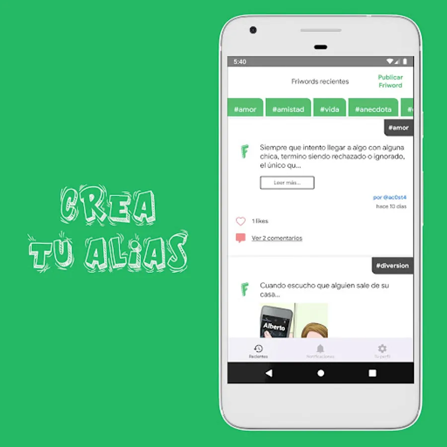 With Friwords, you will create your alias and password and start sharing secrets completely anonymously. Do you have love, personal, friendship or partner problems? Calm down, let other people help you.