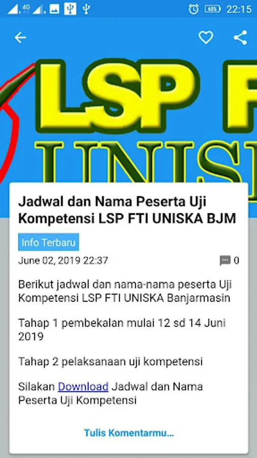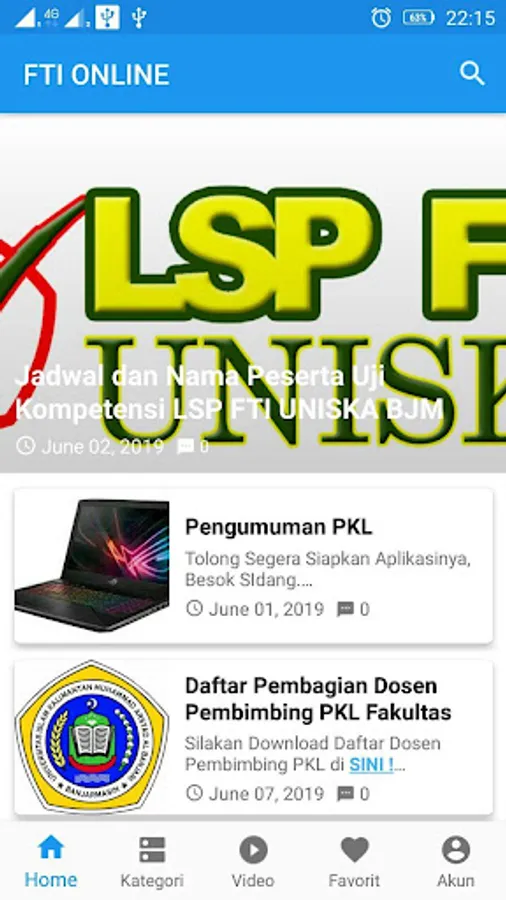 FTI ONLINE - Is a mobile application to make it easier for students to access Information Technology (FTI) Islamic University of Borneo Muhammad Arsyad Al-Banjari information with real-time notification features if there is the latest information.