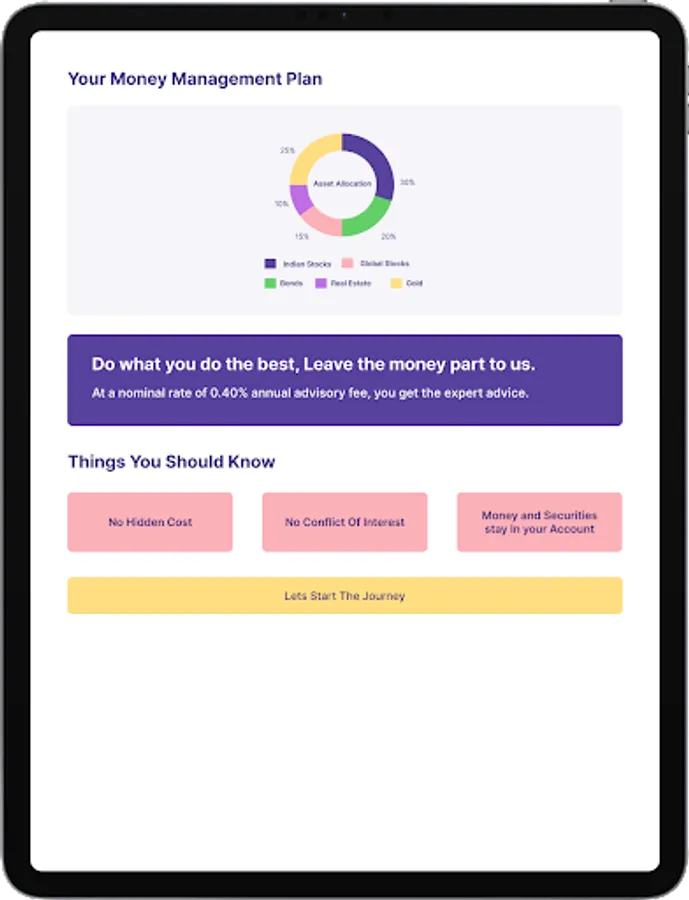Fydaa is an automated platform that creates personalized money management and investment plans, using various low cost and efficient investment vehicles (mainly ETFs aka Exchange Traded Funds) that are usually unknown to smaller, inexperienced investors. The service is SEBI accredited, thus adhering to strict rules and guidelines that are designed to safeguard the users.