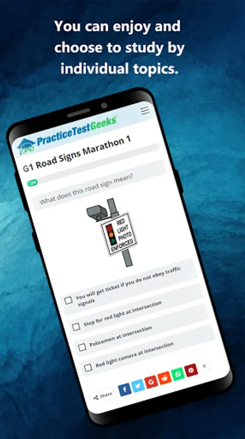 - Track and monitor your progress. Analyze your performance and find out when you have reached test standard.