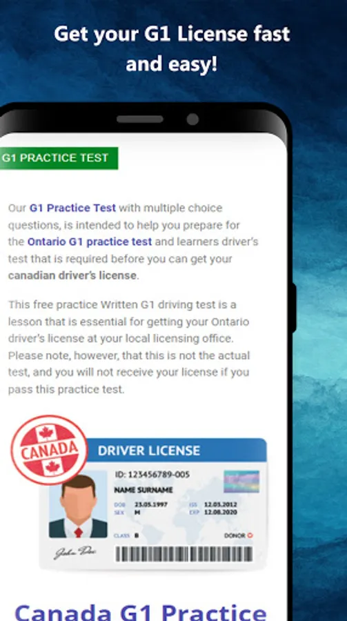 - Exam Mode (theory test simulator) is as close as it gets to the actual G1 Test experience.