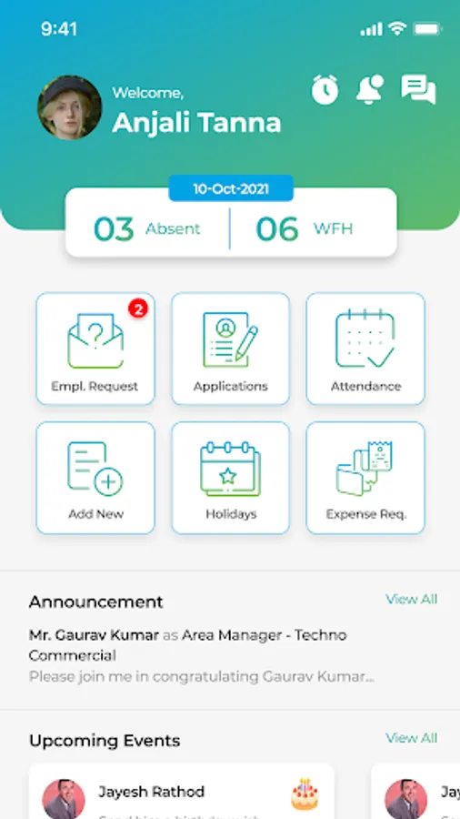 The employee will see all the upcoming events of the company here. The activities include birthdays, holidays, and other events held by the company.