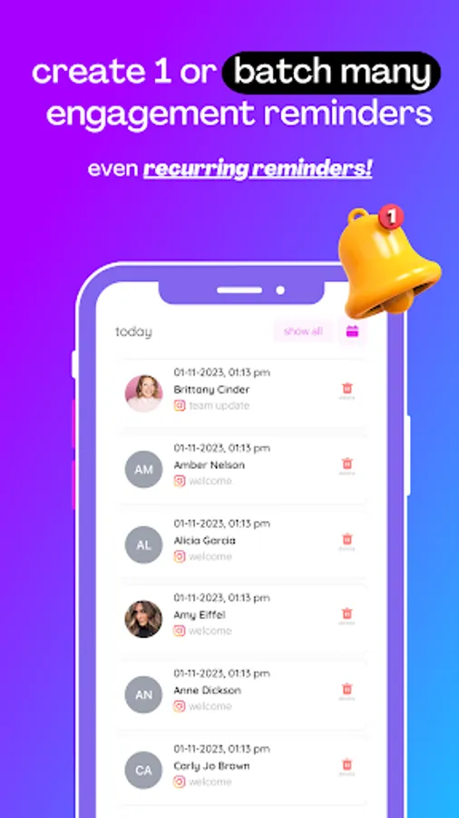 Never miss the follow-up by using geniechat reminders! Create one-time, recurring or templated reminders and we will send you a ping when it’s time to send.