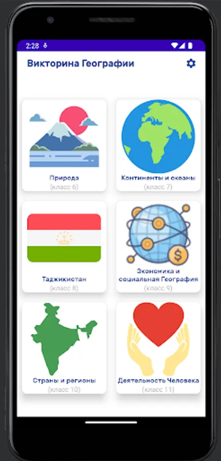 Tests are prepared according to class textbooks (6,7,8,9,10,11) The program consists of more than 400 tests, which are divided into parts.