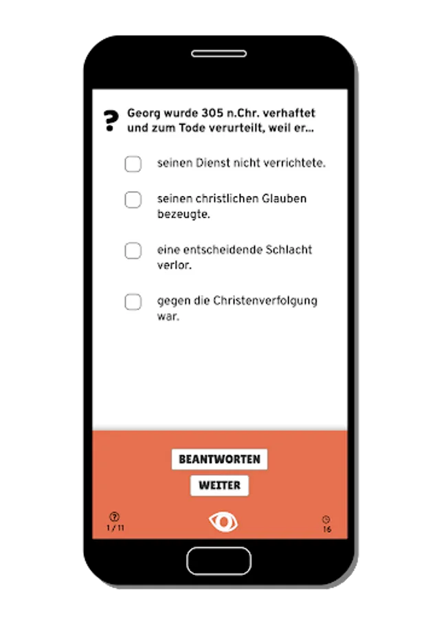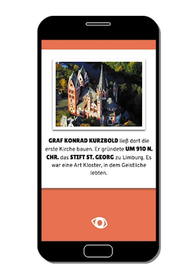 Each chapter consists of graphically designed "flashcards" and a quiz. Correct answers are used to collect points that can be used to earn various trading cards with motifs from Limburg Cathedral.