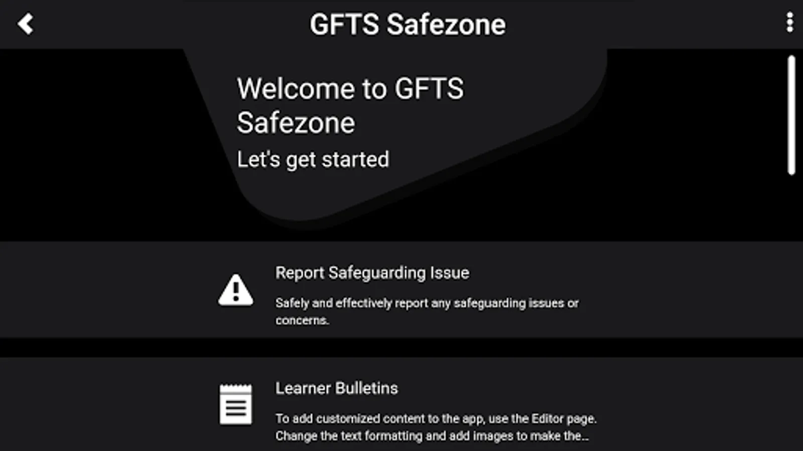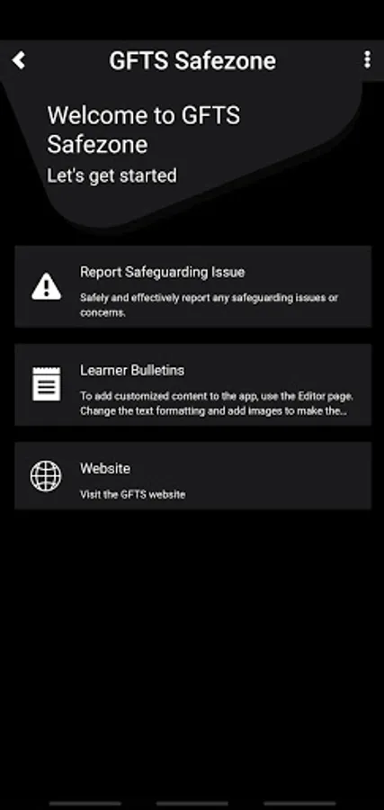This app allows learners that are on an apprenticeship being provided by GFTS Ltd to inform a safeguarding officer within the company of a safeguarding concern or issue that they have at work.