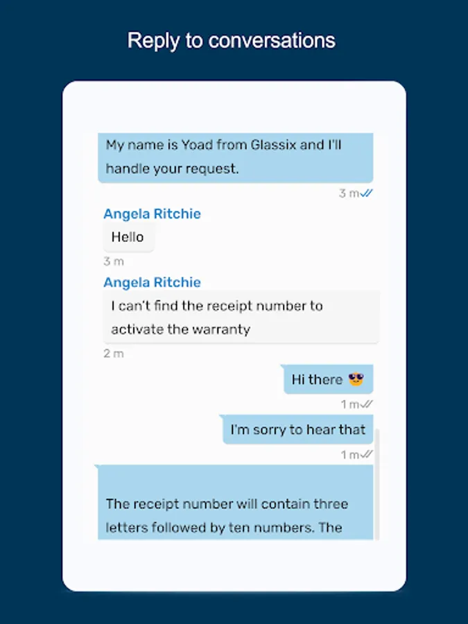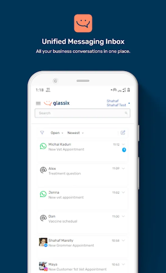 With Glassix, you can talk to your customers using any channel: your website, WhatsApp, iMessage, Facebook, Instagram, email and more.
