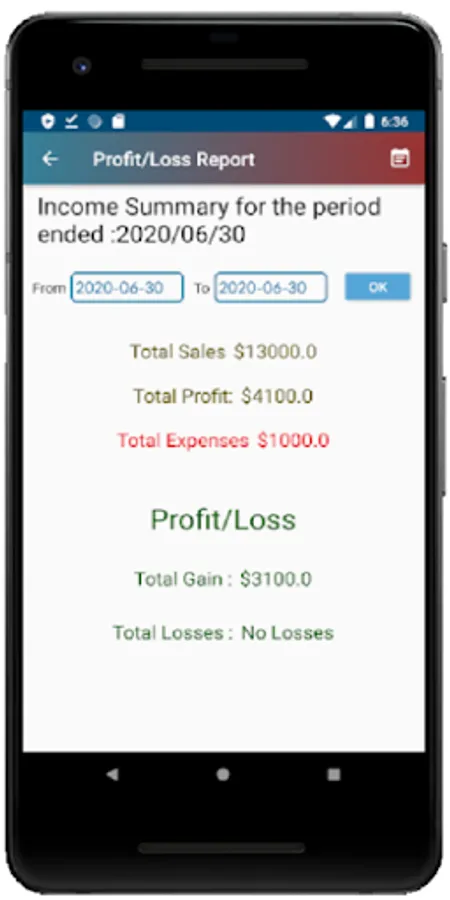 9. Sales, Profit and Loss Reports with receipt printing using any Bluetooth enabled 58mm POS printer.