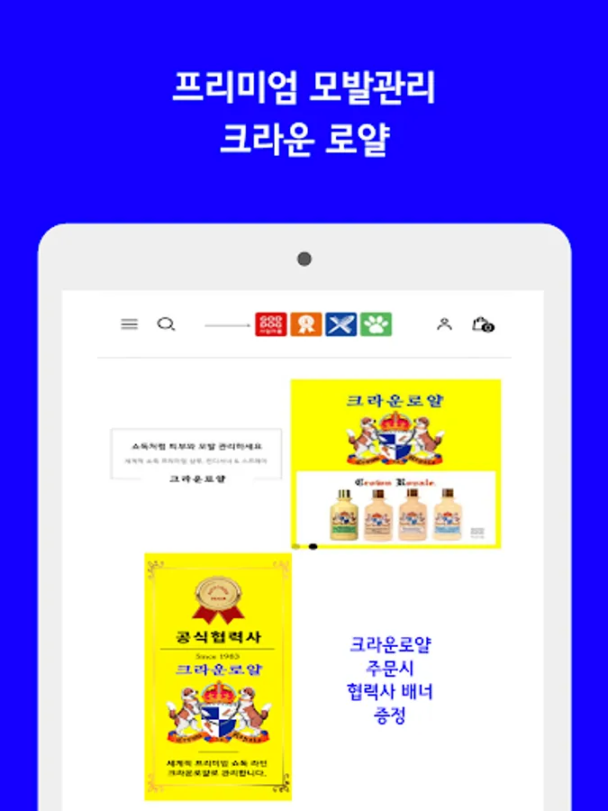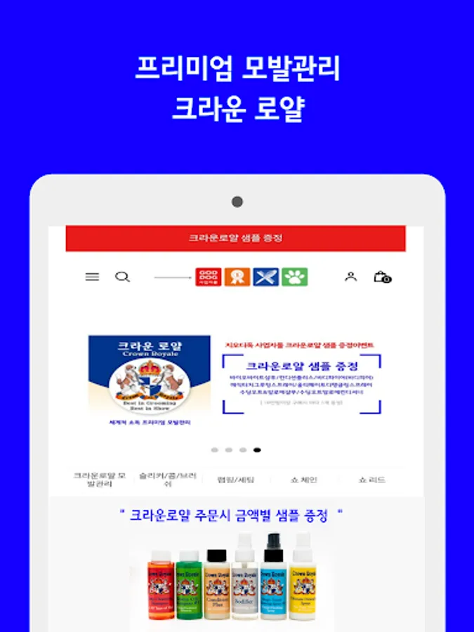 A shopping mall for pet mall operators!!! You can find Crown Royal, Lawrence Slicker, Geo-Did Dog Show Chain, Geo-D Dog Show Lead, Geo-D Dog Brush, Clicker, and Non-Latex Band.