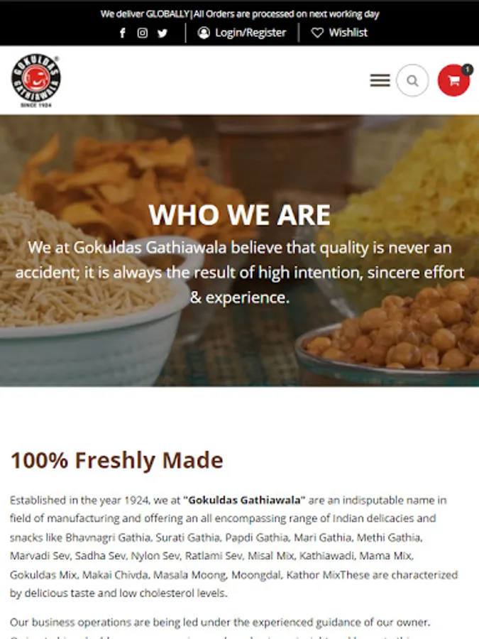 Established in the year 1924, we at "Gokuldas Gathiawala" are an indisputable name in field of manufacturing and offering an all encompassing range of Indian delicacies and snacks like Bhavnagri Gathia, Surati Gathia, Papdi Gathia, Mari Gathia, Methi Gathia, Marvadi Sev, Sadha Sev, Nylon Sev, Ratlami Sev, Misal Mix, Kathiawadi, Mama Mix, Gokuldas Mix, Makai Chivda, Masala Moong, Moongdal, Kathor MixThese are characterized by delicious taste and low cholesterol levels.