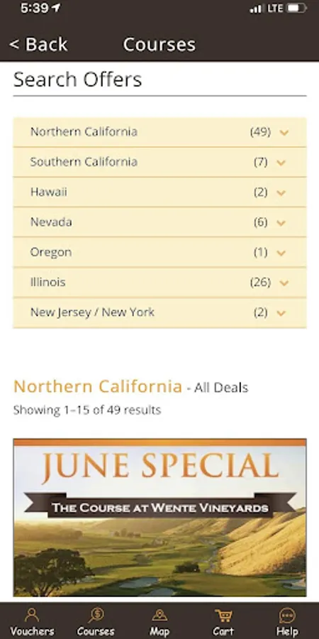 Real-time recommendations for deals at golf courses near you
