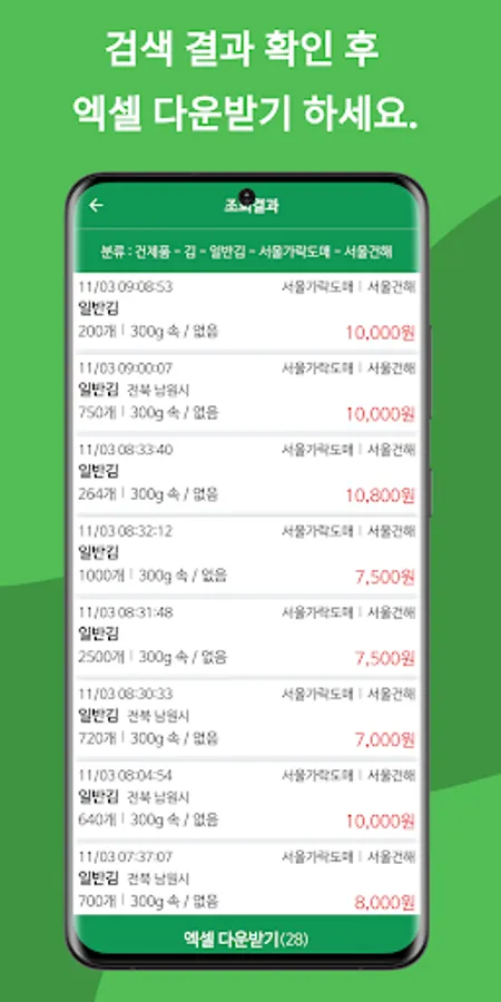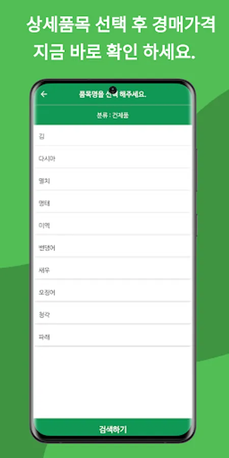 - You can check various information such as auction time, item, wholesale market, wholesale corporation, transaction volume, and meridian price by selecting the date, wholesale market, wholesale corporation, classification, item, and type and then searching.