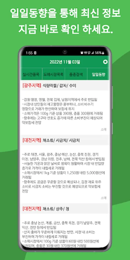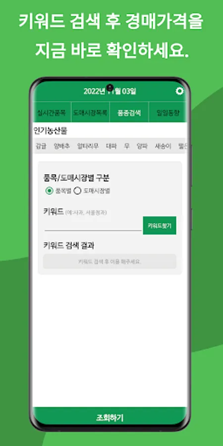 You can view the auction price of agricultural products in real time by searching by item, wholesale market, and variety.