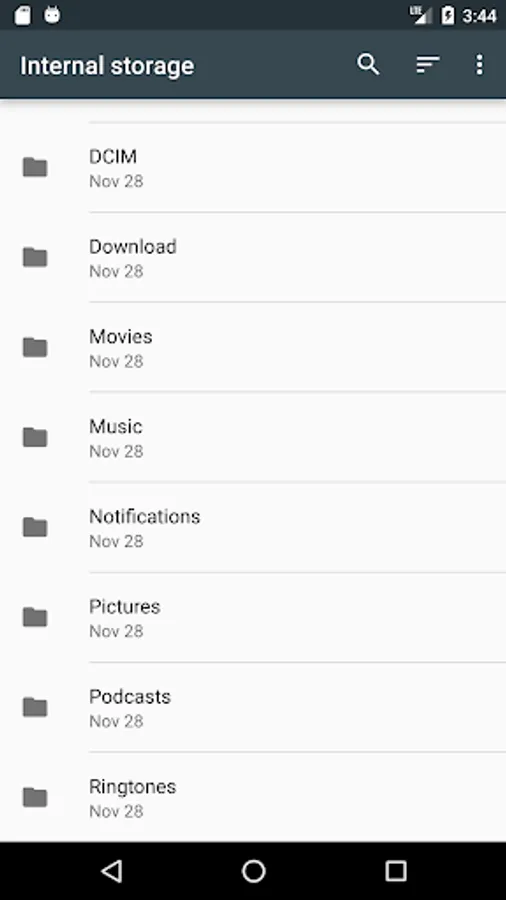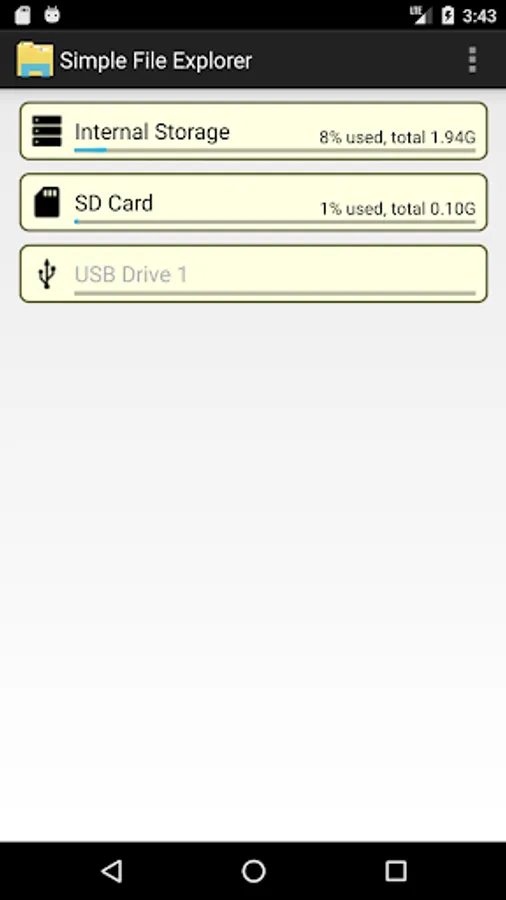 Click the labelled buttons on main screen to explorer the folders in respective area .A long click on a folder/file will display a menu on top for sharing, deleting and copying actions.