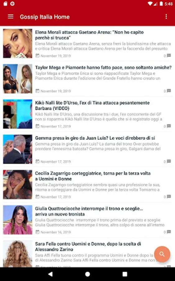 Download the BEST Android app from Gossip & Pettegolezzi. Thanks to our APP you can ALWAYS stay updated on all the hottest gossip news. From the events of the throne of MEN and WOMEN, passing through reality shows like ISOLA DEI FAMOSI, GRANDE FRATELLO and also the other minors, finishing with the news and gossip of GOSSIP.