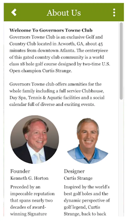 Governors Towne Club is an exclusive Golf and Country Club located in Acworth, GA, about 45 minutes from downtown Atlanta. The centerpiece of this gated country club community is a world class 18 hole golf course designed by two-time U.S. Open champion Curtis Strange.