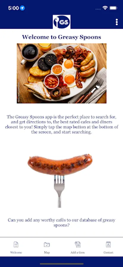 The Greasy Spoon App will enable people to find the nearest Greasy Spoon to them using GPS on their phones. Once you have found a Greasy Spoon the App will be able to give you directions straight to the Greasy Spoon.