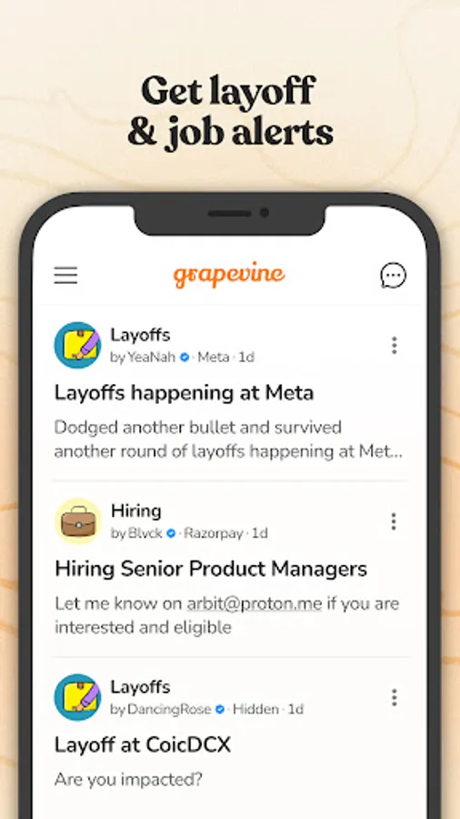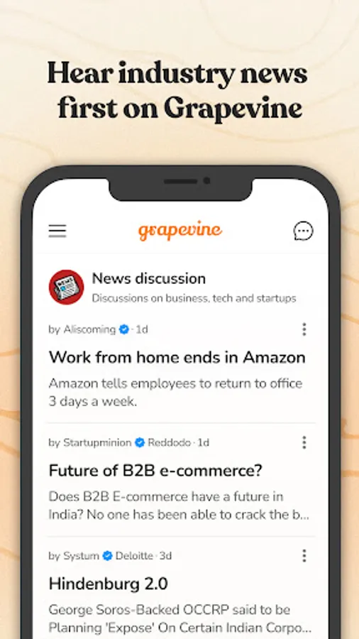 Download Grapevine today and start engaging in real conversations with real professionals, just like you.