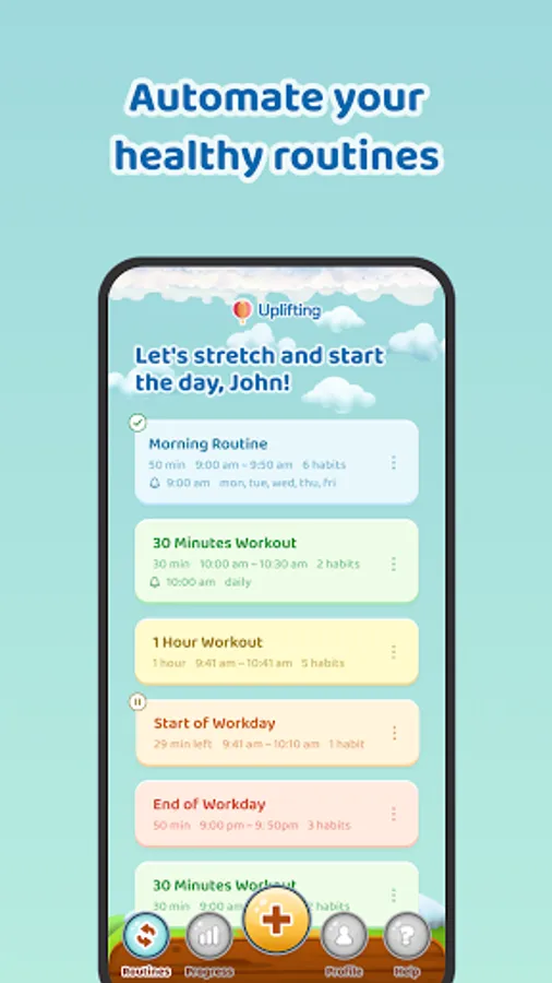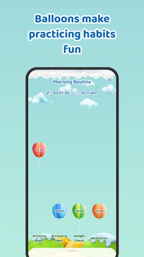 Organization of daily tasks is about routines. Assign execution durations and get notified each time you need to take action. The notification will remind you when the routine needs to be started and the execution timer will assist you in completing the task and stay focused. You can modify the order of doing the tasks, but the balloons will not pop before you complete all the tasks in the routine.