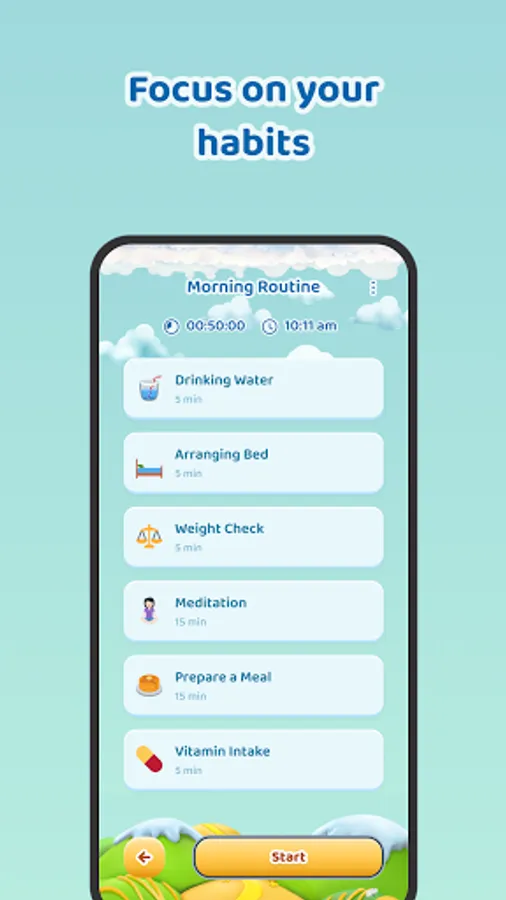 Each habit has an original and colourful icon. We offer extensive presets of habits to add to routines. You can also create custom habits of your own.