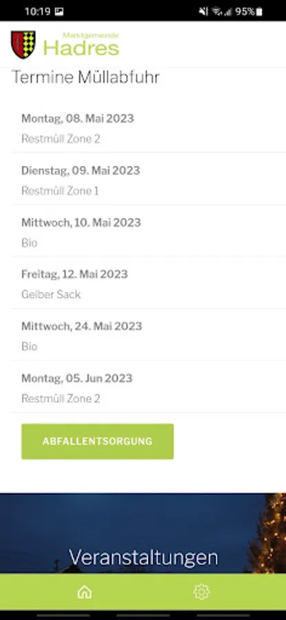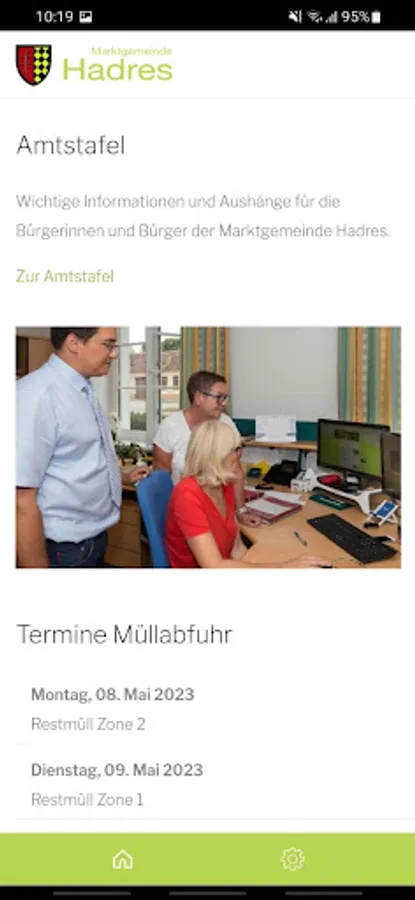 Amtstafel, Veranstaltungskalender, Müllabfuhrtermine und wichtige Benachrichtungen.