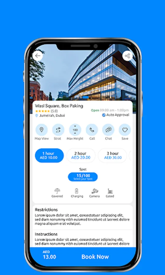 يمكن إستخدام هذا التطبيق لحجز مواقف السيارات العمومية و المواقف الخاصة بميزات كالتجديد التلقائي و صيانة السيارات و الدراجات النارية ، حمل التطبيق الآن و أحصل على 5 دراهم مجانآ .