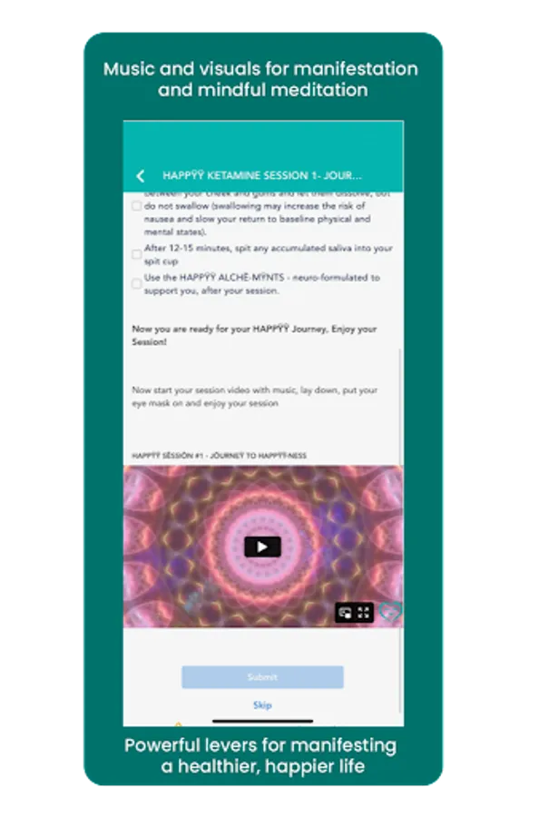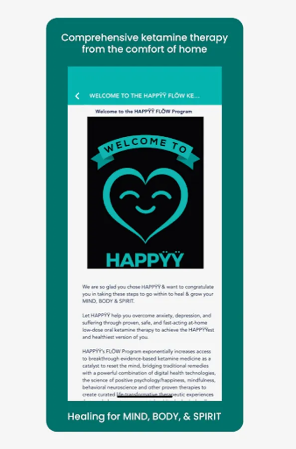 Continue building on your progress with a combination of tools, YOUR HAPPŸŸ CARE TEAM and resources found the HAPPŸŸ FLÖW program that include your HAPPŸŸ LÏFË app/digital therapeutics, mindfulness, music as medicine, HAPPŸŸ LÏFË PLANNER, group integration circles and additional ketamine sessions that have a compounding therapeutic effect (as prescribed by your provider)