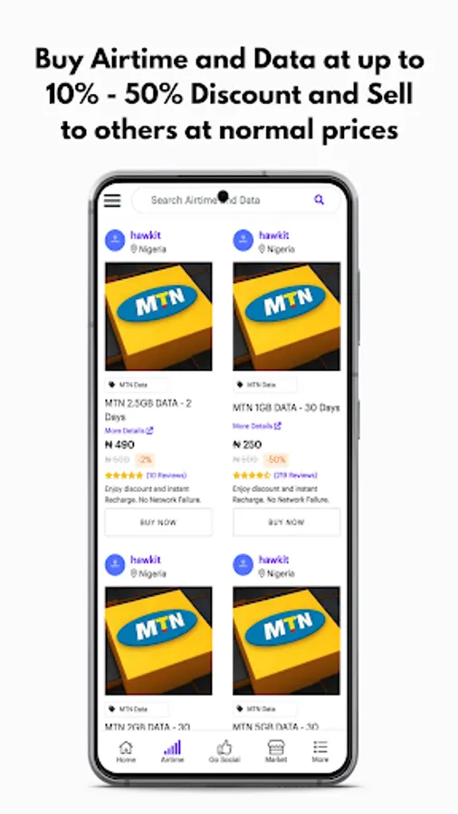 Buy Airtime and Data at amazingly cheap prices of up 10% - 50% Discount and sell to friends and family at normal prices.