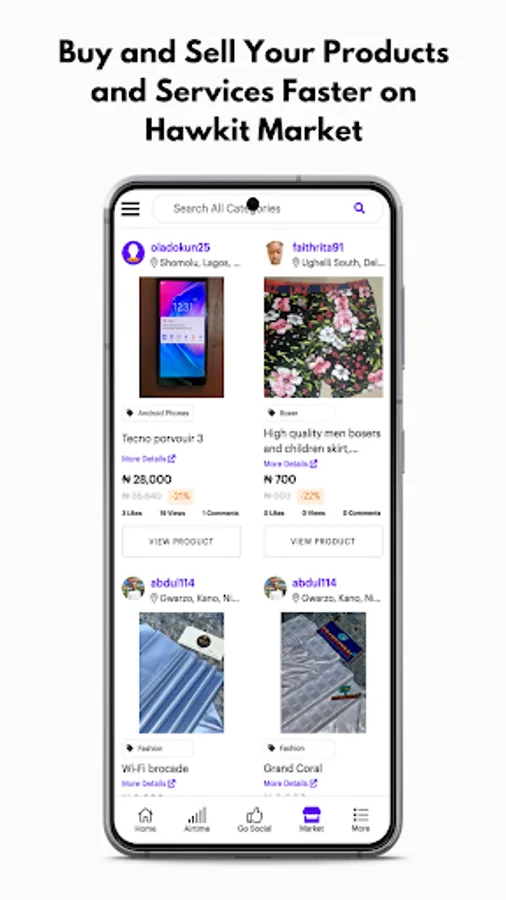 Buy and Sell Your Products and Services to a large number of people on the Hawkit Market.