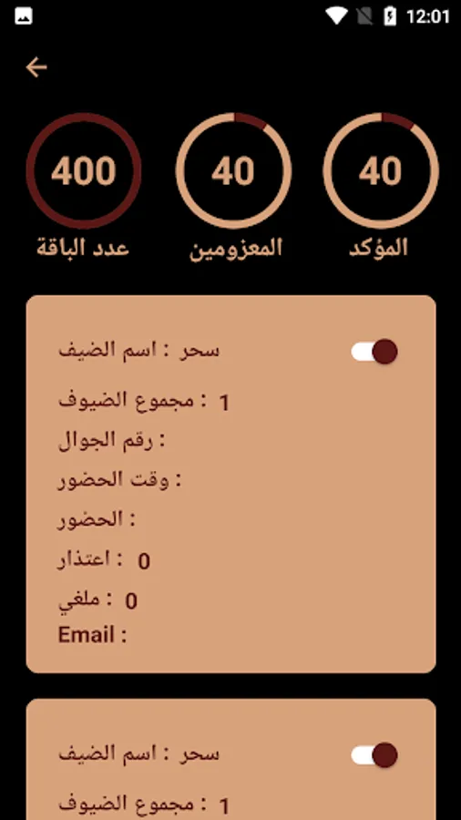 In this application, you can see statistics about each guest and event as well. It also has a receptionist part where scanning QR code card is done in order to update guest statistics.