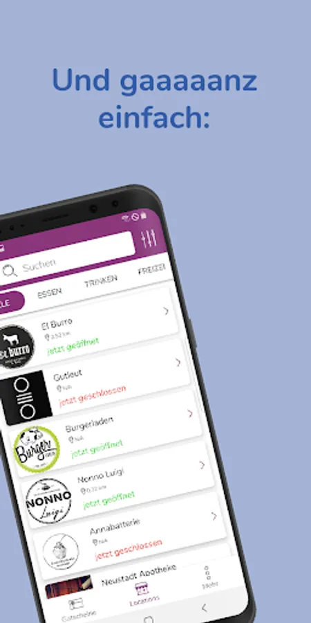 Du hast Lust auf etwas Bestimmtes? Dann filter unser Angebot einfach nach Kategorien oder Gutscheinen. So zeigen wir dir nur das an, worauf du gerade Lust hast und du musst dich nicht durch unser ganzes Angebot scrollen.