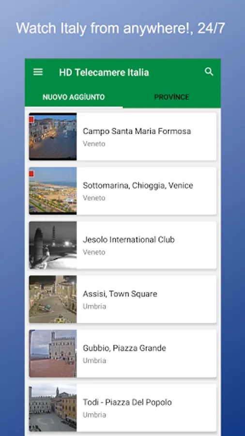 See cities like Rome, Milan, Naples, Venice live!
