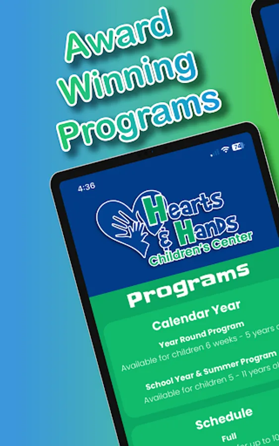 With the Hearts & Hands app, you'll have all the information you need right at your fingertips. Our app is super convenient and user-friendly, with all the features you need in one easy-to-use platform. Whether you're at work or on the go, you'll always be able to stay connected with your child and our team.