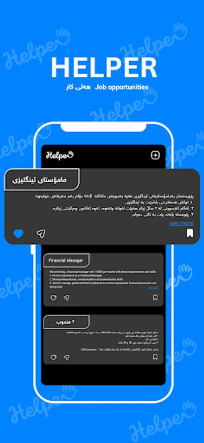 هێلپهر پلاتفۆرمێکی تۆڕە کۆمەڵایەتییەکانە کە ئەو کەسانە دەبەستێتەوە کە بەدوای کاردا دەگەڕێن لەگەڵ خاوەنکارەکان، و ڕێگەت پێدەدات وێنە و ڤیدیۆکانت لەگەڵ جیهاندا هاوبەش بکەیت. پلاتفۆرمەکەمان بەو باوەڕەوە دامەزراوە کە دۆزینەوەی کارێک دەبێت ئاسان بێت و هەموو کەسێک شایەنی ئەو دەرفەتەیە کە شارەزایی و داهێنانی خۆی نیشان بدات.