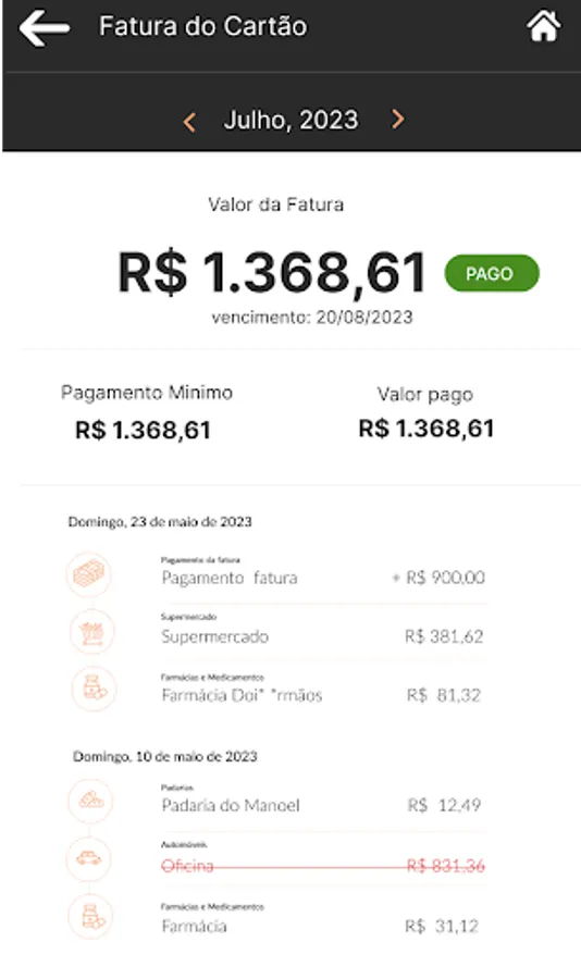 Organize your finances directly through the app, with the possibility of paying up-to-date or overdue invoices in installments.