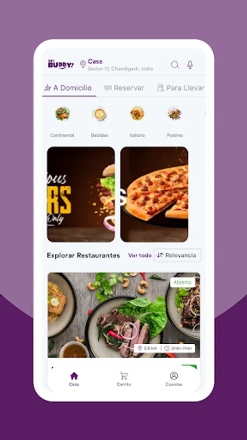 La comida que desees de los restaurantes que más sea de tu agrado está disponible a la rapidez de Buddy.