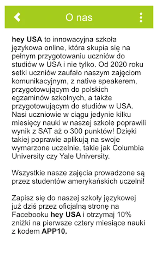 Jeśli marzysz o studiach w Stanach Zjednoczonych, to aplikacja hey USA jest stworzona dla Ciebie! W hey USA zgromadziliśmy wszystkie najważniejsze informacje w jednym miejscu, aby przygotowanie do studiów w USA stało się łatwiejsze. Spełnij swoje marzenia już dziś z hey USA!
