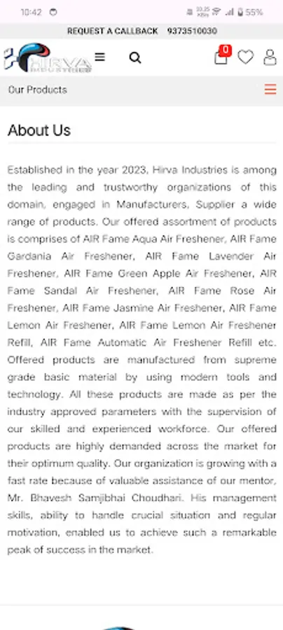 Established in the year 2023, Hirva Industries is among the leading and trustworthy organizations of this domain, engaged in Manufacturers, Supplier a wide range of products. Our offered assortment of products is comprises of AIR Fame Aqua Air Freshener, AIR Fame Gardania Air Freshener, AIR Fame Lavender Air Freshener, AIR Fame Green Apple Air Freshener, AIR Fame Sandal Air Freshener, AIR Fame Rose Air Freshener, AIR Fame Jasmine Air Freshener, AIR Fame Lemon Air Freshener, AIR Fame Lemon Air Freshener Refill, AIR Fame Automatic Air Freshener Refill etc. Offered products are manufactured from supreme grade basic material by using modern tools and technology. All these products are made as per the industry approved parameters with the supervision of our skilled and experienced workforce. Our offered products are highly demanded across the market for their optimum quality. Our organization is growing with a fast rate because of valuable assistance of our mentor, Mr. Bhavesh Samjibhai Choudhari. His management skills, ability to handle crucial situation and regular motivation, enabled us to achieve such a remarkable peak of success in the market..