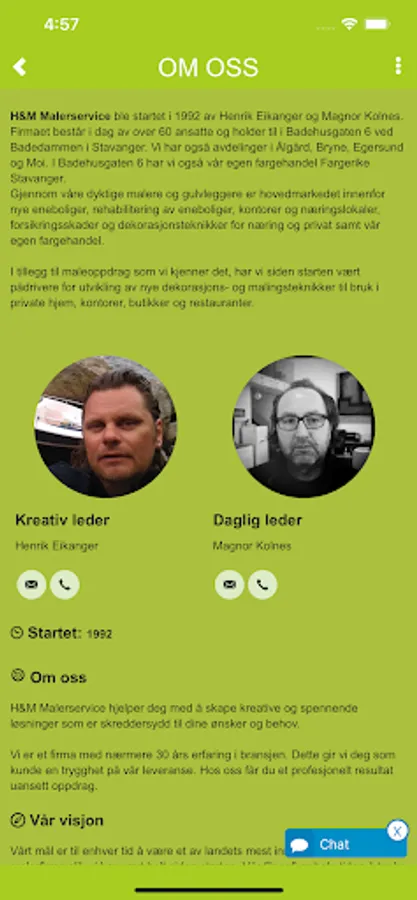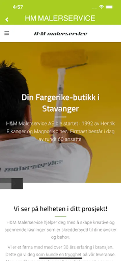 H&M Malerservice AS app for ansatte. Vårt mål er til enhver tid å være et av landets mest innovative og kreative malerfirma slik vi har vært helt siden starten. Vår filosofi er hele tiden å tenke nytt ved å se oppdraget i helhet med farge, lys og form.